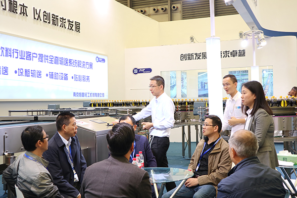 作為國內(nèi)集輸送系統(tǒng)設(shè)計、制造、調(diào)試安裝的高新技術(shù)企業(yè),南京恒昌此次展出了新一代六道高速分瓶器和動態(tài)緩沖平臺等設(shè)備,吸引了眾多業(yè)內(nèi)知名人士和企業(yè)家前來參觀。整個恒昌展臺賓客絡(luò)繹不絕,人頭攢動,熱鬧非凡。