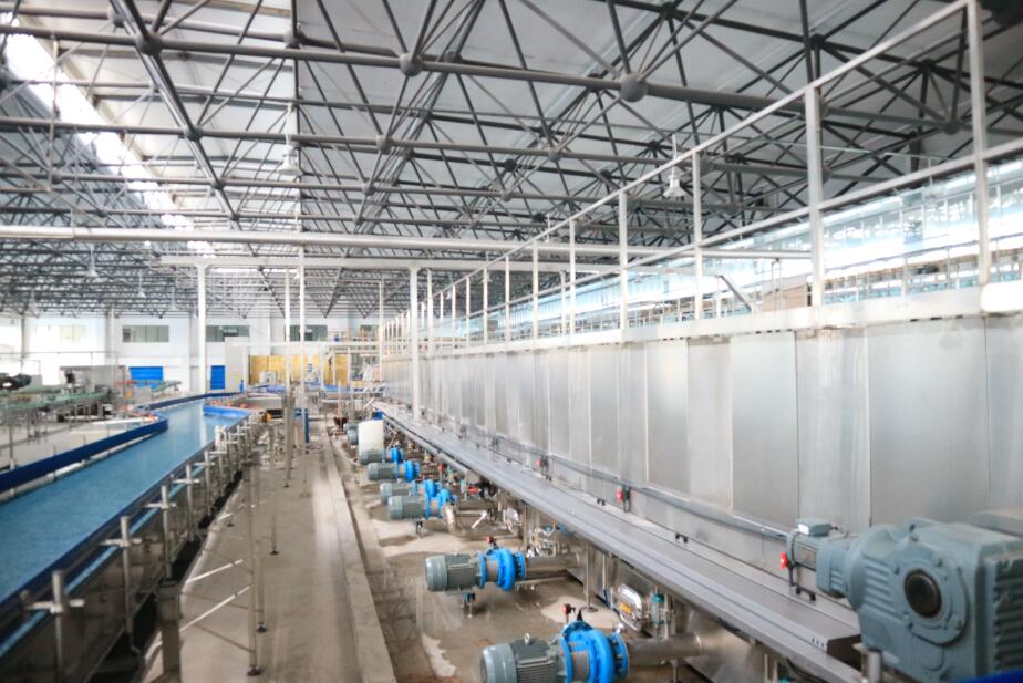 載瓶輸送帶采用節(jié)距為2又1/4英寸的高強度塑料鏈網(wǎng),其強度好,耐高溫,透水性好,并有一定的耐磨性,輸送帶的表面棱邊做成圓的,擴大了表面積,使產(chǎn)品輸送平穩(wěn),主傳動變頻無級變速,能很容易地改變輸送速度,從而使生產(chǎn)能力可在一定范圍內(nèi)作適當(dāng)調(diào)節(jié)。